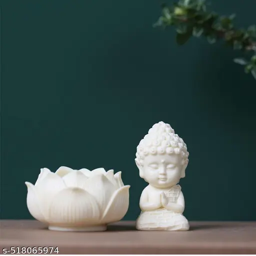 Made from premium marble dust, this charming figurine features a baby Buddha in a meditative pose, seated on a lotus—symbolizing purity, peace, and enlightenment. Its timeless white marble finish enhances any space, whether it’s your living room, study, office desk, meditation corner, or even your car dashboard.