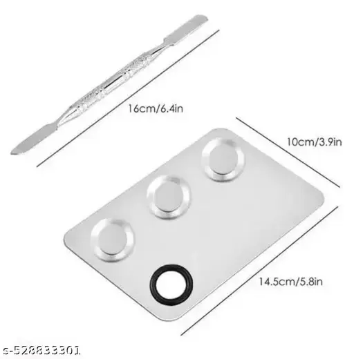 Take your makeup game to the next level with this Makeup Palette of Stainless Steel — a hygienic, reusable, and mess-free tool designed for smooth blending and effortless mixing.