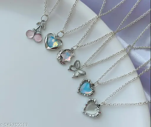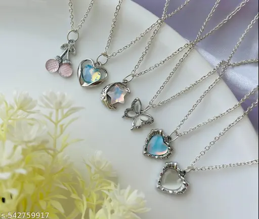 Pack Of 6 Classy Aesthetic Silver AD Charm Pendant Necklace Set For Women And Girls . | Accessories | Gift | Korean | Minimal | Neckpiece | Aesthetic Jewellery | Trendy Pinteresty Necklaces | Necklace Combo