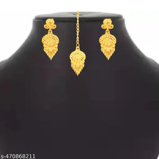 Product Name SDR New Design Gold Plated Necklace Earrings & Maangtika Set