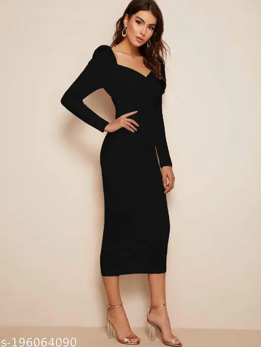 Make a stunning impression with our Women’s Partywear Dress, designed to be the life of every occasion. Crafted from premium polyester fabric, it offers a smooth finish and elegant drape that flatters all body types. The solid color and classic design exude sophistication, while the long sleeves provide an extra touch of grace.
